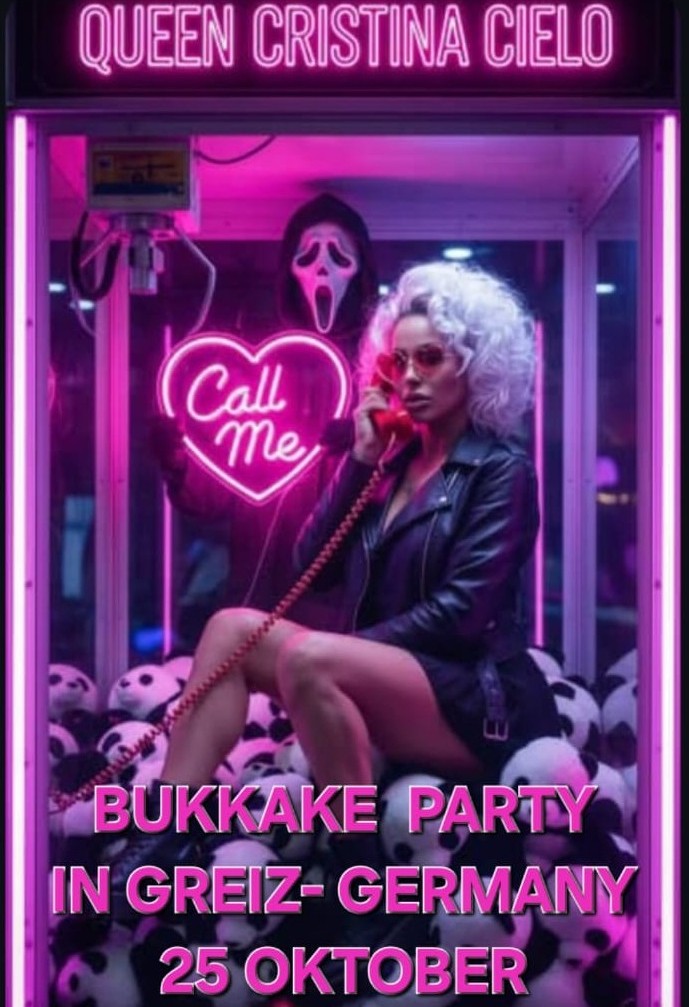 Come to a naughty and wild swinger party, bukkake set with Cristina Cielo. Porn set. Join us and help break the record. We meet in Greiz on Saturday, October 25th.