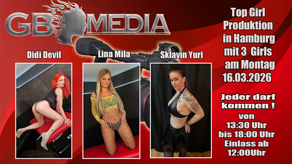 Wir laden dich am 16.03. in der Zeit von 13.30 - 18 Uhr (Einlass ab 12 Uhr) zur Pornoproduktion mit Didi Devil, Lina Mila und erstmalig Sklavin Yuri nach Hamburg ein.